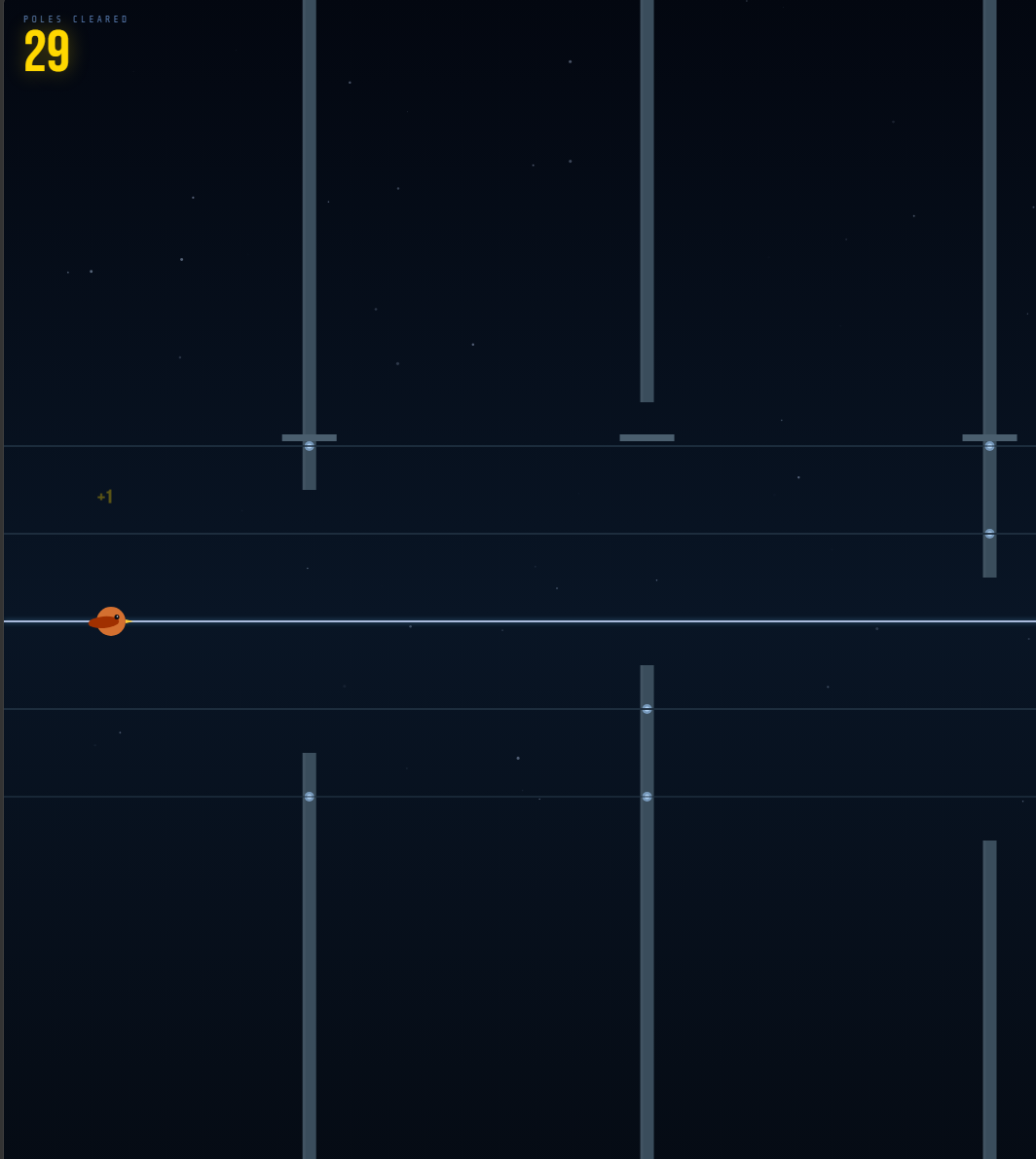 Gaps start wide and shrink the further you fly. How long can you last before the poles close in?